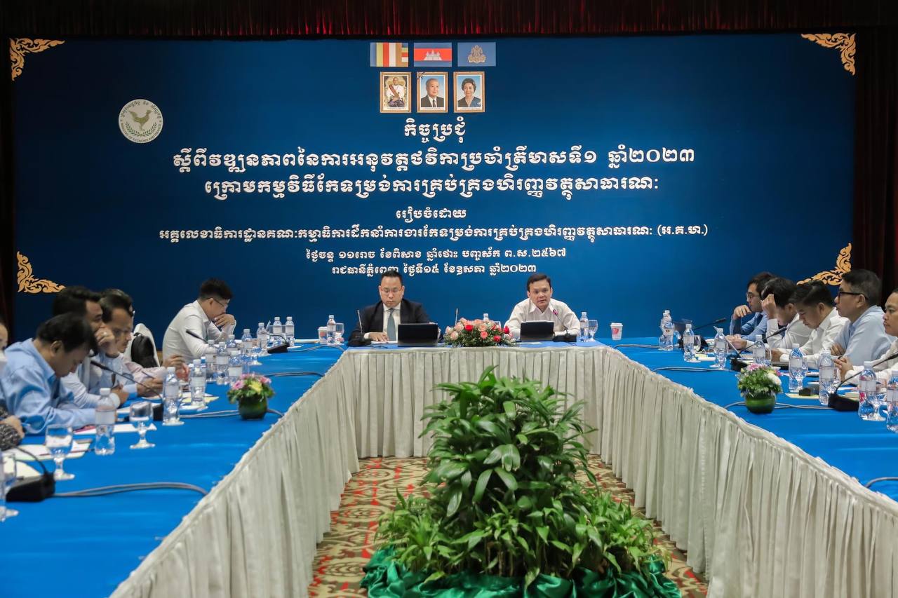 កិច្ចប្រជុំនេះបានដឹកនំាជាមួយក្រសួង-ស្ថាប័ន ក្នុងក្របខណ្ឌកម្មវិធីកែទម្រង់ការគ្រប់គ្រង ហិរញ្ញវត្ថុសាធារណៈ ដើម្បីពិនិត្យវឌ្ឍនភាពត្រីមាសទី១ ឆ្នំា២០២៣ ស្តីពីវឌ្ឍនភាពសកម្ម ភាព និងការអនុវត្តផែនការថវិកា ក្នុងន័យបន្តជំរុញការអនុវត្តឱ្យសម្រេចបានតាមផែនការ ជាពិសេសពិភាក្សា និងកំណត់សកម្មភាពអាទិភាពដែលត្រូវអនុវត្តក្នុងឆ្នំា២០២៣ ដើម្បីធា នាឱ្យសម្រេចបានគោលដៅសំខាន់ នៃផែនការសកម្មភាពរួម ដំណាក់កាលទី៤។