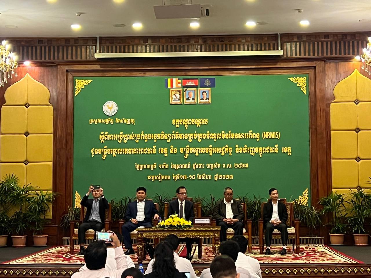 ខេត្តសៀមរាប៖ នាព្រឹកថ្ងៃព្រហស្បតិ៍ ១កើត ខែស្រាពណ៍ ឆ្នំាថោះ បញ្ចស័ក ព.ស.២៥៦៧ ត្រូវនឹងថ្ងៃទី១៧ ខែសីហា ឆ្នំា២០២៣ នៅសណ្ឋាគារ Angkor Empress ខេត្តសៀមរាប លោក វ៉ា វណ្ណច័ន្ទ ប្រធានការិយាល័យទ្រព្យសម្បត្តិរដ្ឋ និងចំណូលមិនមែនសារពើពន្ធ និង លោក មួង សំអឿន អនុប្រធានការិយាល័យទ្រព្យសម្បត្តិរដ្ឋ និងចំណូលមិនមែនសារពើពន្ធ បានចូលរួមវគ្គបណ្តុះបណ្តាល ក្រោមអធិបតីភាពឯកឧត្តម នេត មន្នី ប្រតិភូរាជរដ្ឋាភិបាលទទួលបន្ទុកជាអគ្គនាយក នៃអគ្គនាយកដ្ឋានទ្រព្យសម្បត្តិរដ្ឋ និងជាអនុប្រធានក្រុមការងារ ក.ម.ព និងចំណូលមិនមែនសារពើពន្ធ បានបើកវគ្គបណ្តុះបណ្តាលស្តីពីការប្រើប្រាស់ប្រព័ន្ធបច្ចេកវិទ្យាព័ត៌មានគ្រប់គ្រងចំណូលមិនមែនសារពើពន្ធ (NRMIS) ជូនមន្រ្តីបង្គោលមន្ទីរសេដ្ឋកិច្ច និងហិរញ្ញវត្ថុ និងរតនាគារ រាជធានី ខេត្ត ទំាង២៥ វគ្គបណ្តុះបណ្តាលនេះប្រព្រឹត្តទៅនៅថ្ងៃទី១៧ ដល់ថ្ងៃទី១៨ ខែសីហា ឆ្នំា២០២៣។
